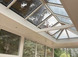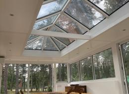 Le dôme vitré à quatre pente est muni de motifs décoratifs sur la faîtière et de triples vitrages pour limiter les déperditions de chaleur.
