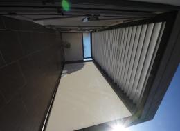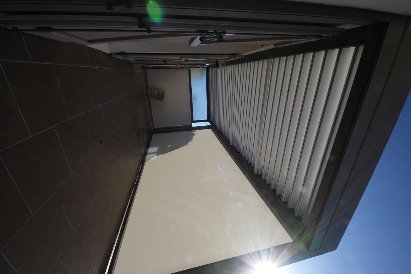 Posée en limite de propriété, nous avons posé un vitrage dépoli sur le mur donnant chez les voisins.