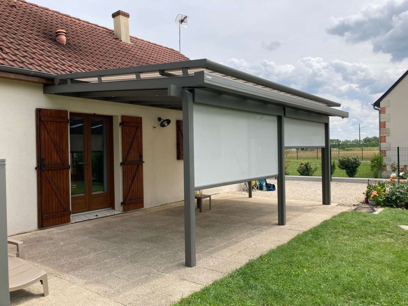 pergola sans perte de lumière dans la maison, équipée de stores pour profiter de l'ombre selon vos envies
