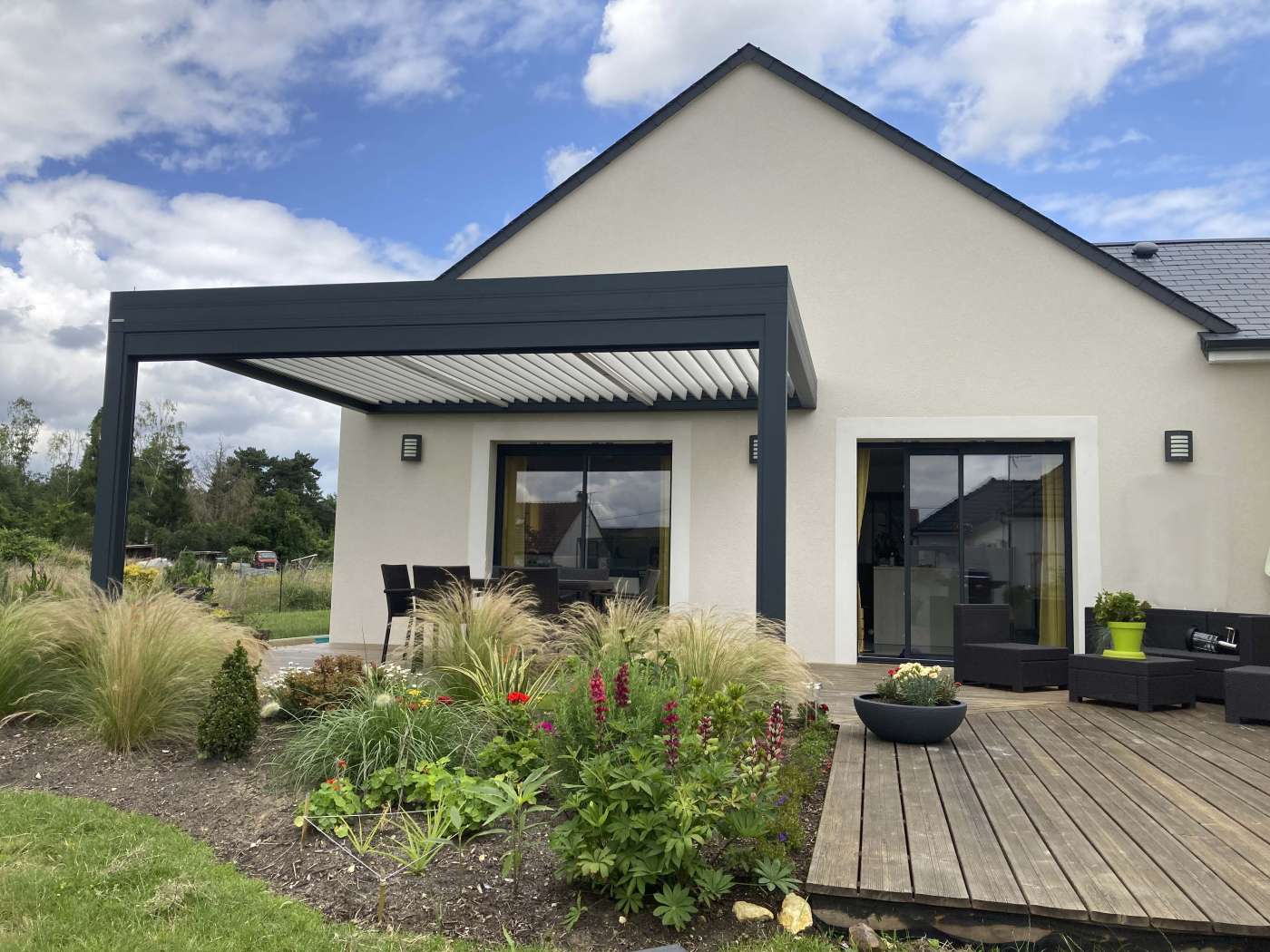 pergola bioclimatique sur une maison contemporaine à Romorantin