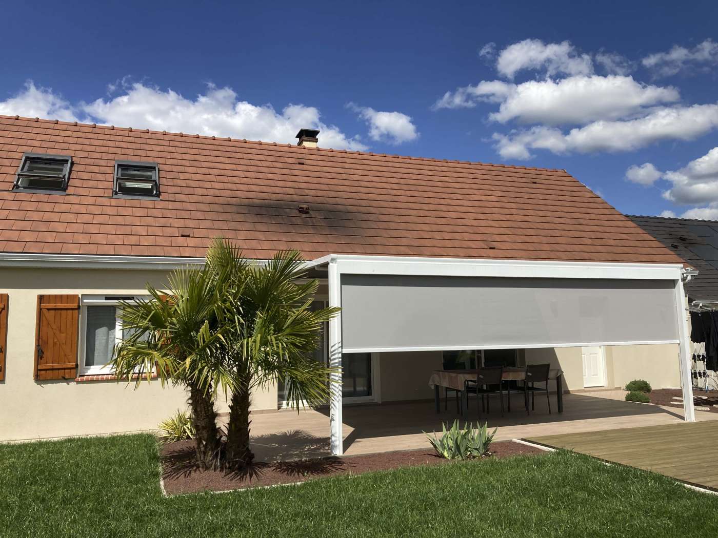 Également équipée d'un store en façade, l'ombre est préservée lorsque le soleil n'est pas au zénith.