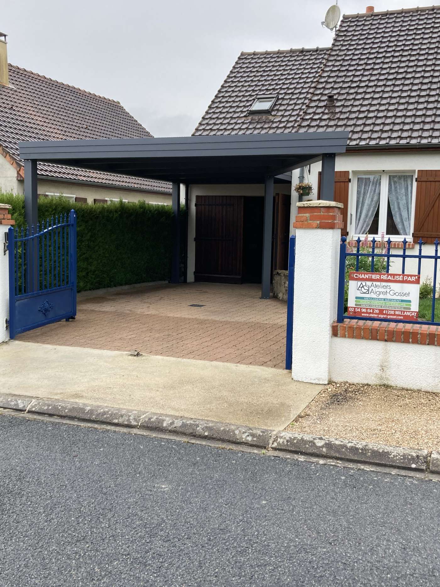 Carport à la toiture complexe, pour s'adapter aux contraintes du lieu, posée à Blois