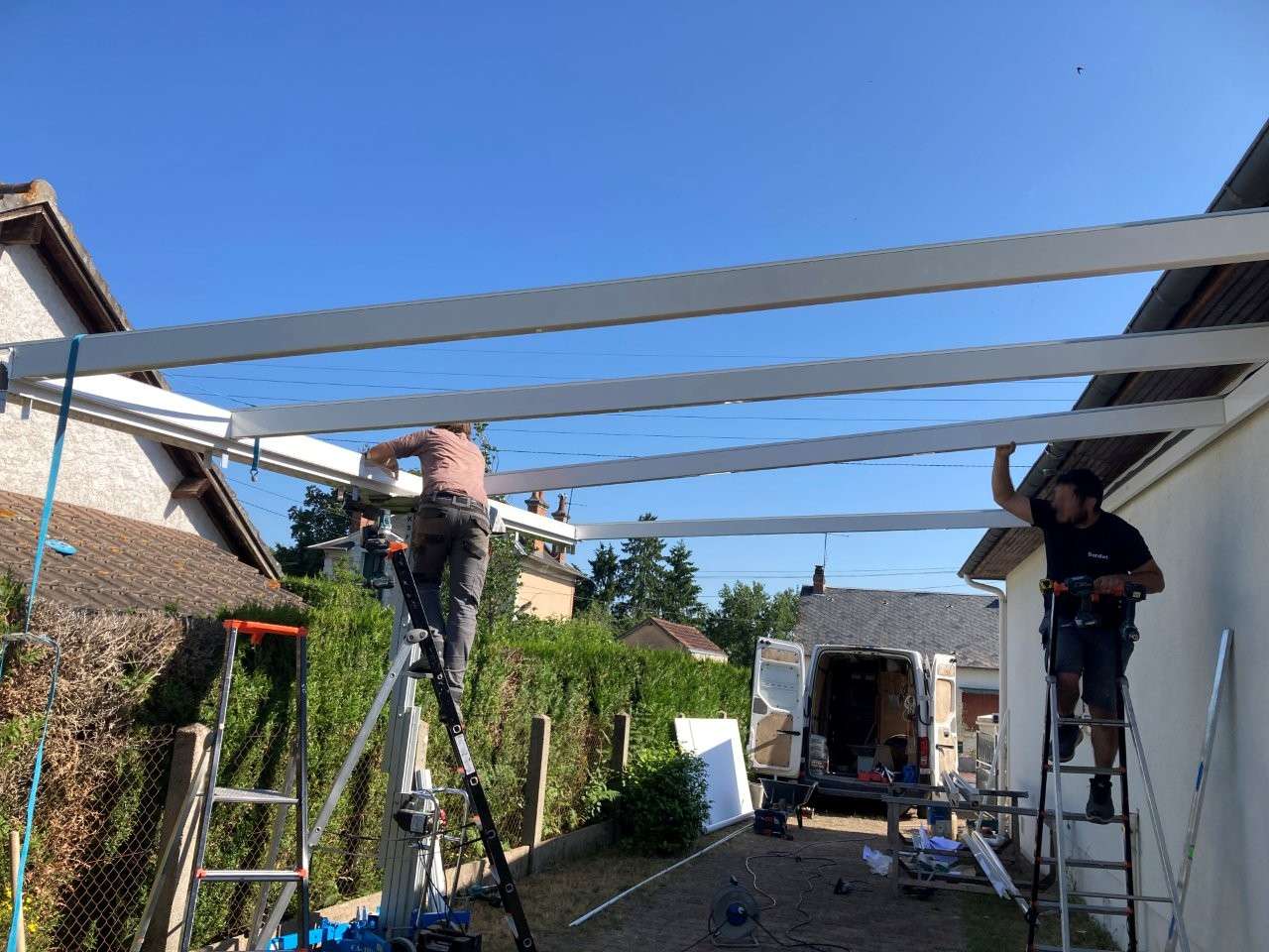 Carport aluminium pose en limite de propriété